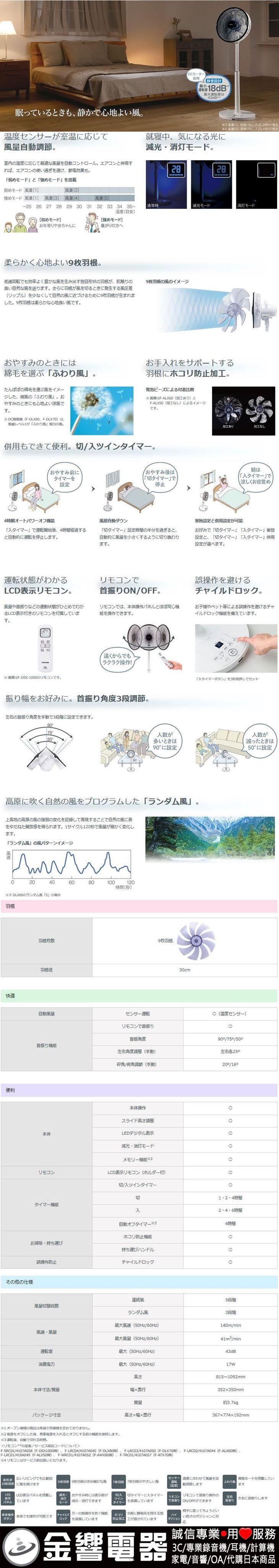 代購空運,TOSHIBA F-DLX80-W(日本國內款):::2019年,東芝DC變頻馬達,電風扇,立扇,附遙控器,刷卡或3期零利率,F-DLX80(W)