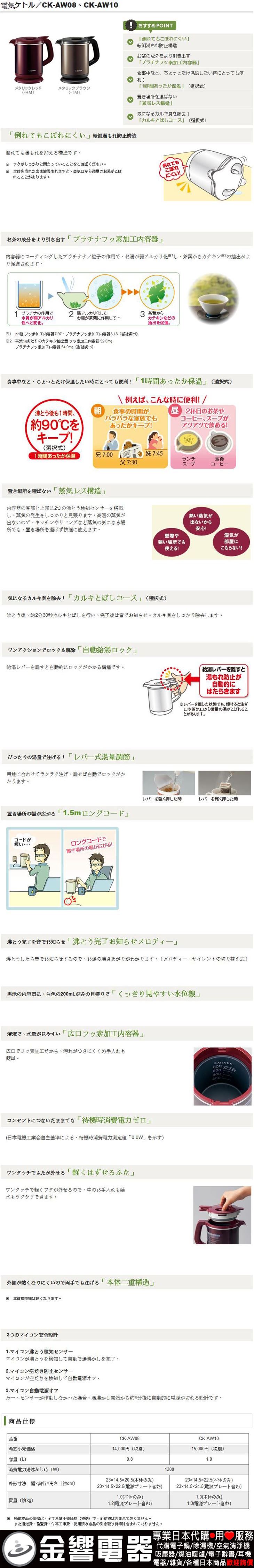 代購,ZOJIRUSHI CK-AW08-RM(日本國內款):::電熱水壺,快煮壺,電茶壺,熱水瓶,0.8L,刷卡或3期零利率,CKAW08