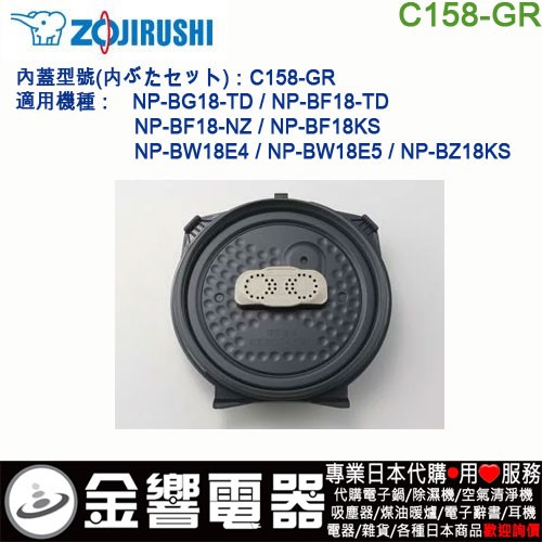 【金響代購】空運,ZOJIRUSHI C158-GR(日本國內款):::象印電子鍋,內蓋,內鍋蓋,NP-BG18,NP-BF18,NP-BW18E4,專用,刷卡或