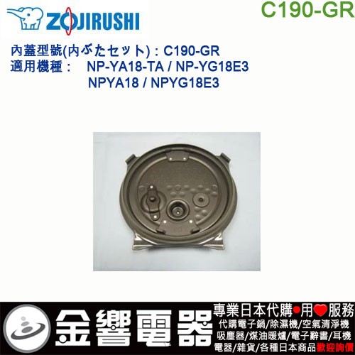 【金響代購】空運,ZOJIRUSHI C190-GR(日本國內款):::象印電子鍋,內蓋,內鍋蓋,NP-YA18-TA,NP-YG18E3,NP-YA18,NP-YG18E3,專用