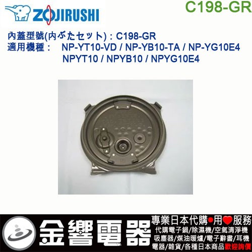 【金響代購】空運,ZOJIRUSHI C198-GR(日本國內款):::象印電子鍋,內蓋,內鍋蓋,NP-YT10-VD,NP-YB10-TA,NP-YG10E4,專用