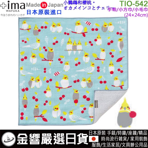 【金響日貨】現貨,+ima TIO-542 小鸚鵡和櫻桃(日本原裝):::日本製,今治毛巾,WAFUKA,和布華,愛媛縣,小毛巾手帕,小毛巾,小方巾,刷卡或3期,4543479142728
